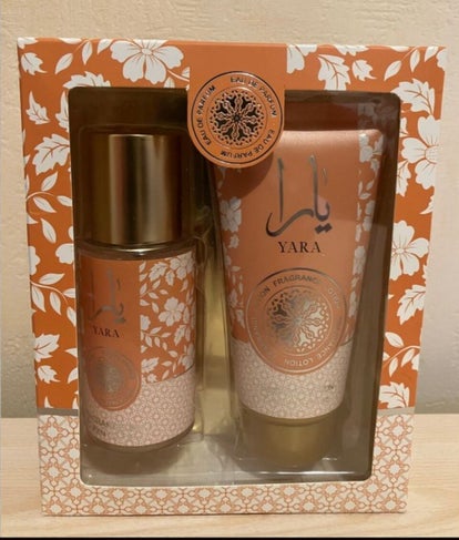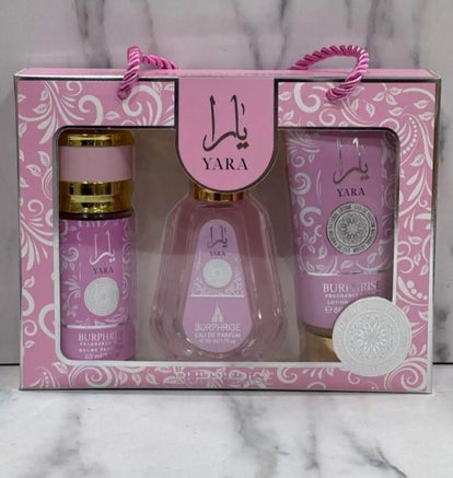 Coffret Yara – Lattafa | Parfum 50ml + Poche 20ml + Lotion parfumée 90